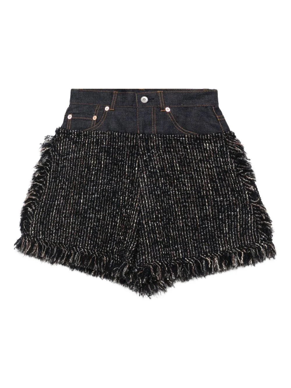 fringed tweed denim shorts