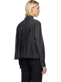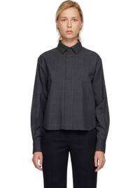 Plain-woven wool shirt. · Houndstooth pattern throughout · Spread collar · Button closure · Patch pocket at chest · Pleats at buttoned barrel cuffs · Pleats at chiffon back yoke Supplier color: Gray Body: 100% wool. Trim: 100% polyester. Made in Japan 252445F109006