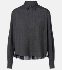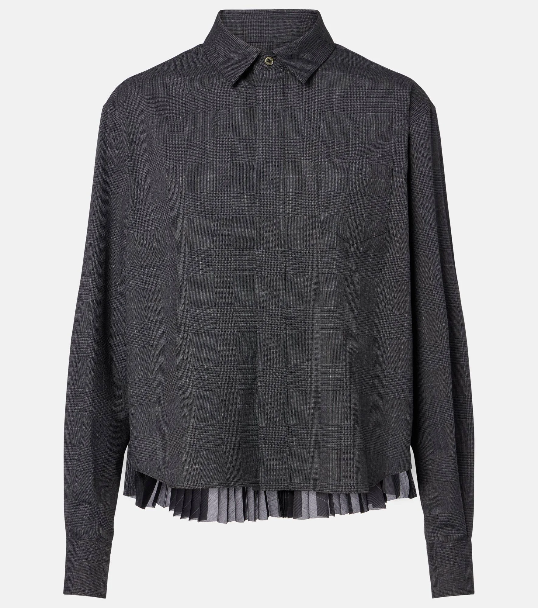 Sacai’s penchant for hybrid designs sees contrasting textures, fabrics, and techniques combined to create unique and innovative styles. Crafted from wool, this shirt boasts a timeless Prince of Wales checked motif, and the hemline is accented with plisse detailing. Product Details - Material: 100% wool - Care instructions: dry clean - Made in Japan - Designer color name: Gray - Item color: gray - Trim: 100% polyester - Collar: classic (Straight point) - Closure: concealed button placket - Pockets: angled chest pocket - Cuff: buttoned - Item number: P01066712 Size & Fit - Fits large to size - we recommend trying one size smaller - Designed for a loose fit - Non-stretchy fabric - Falls to the hip - The model seen in the picture is 178cm-5'10" and wearing a size 1