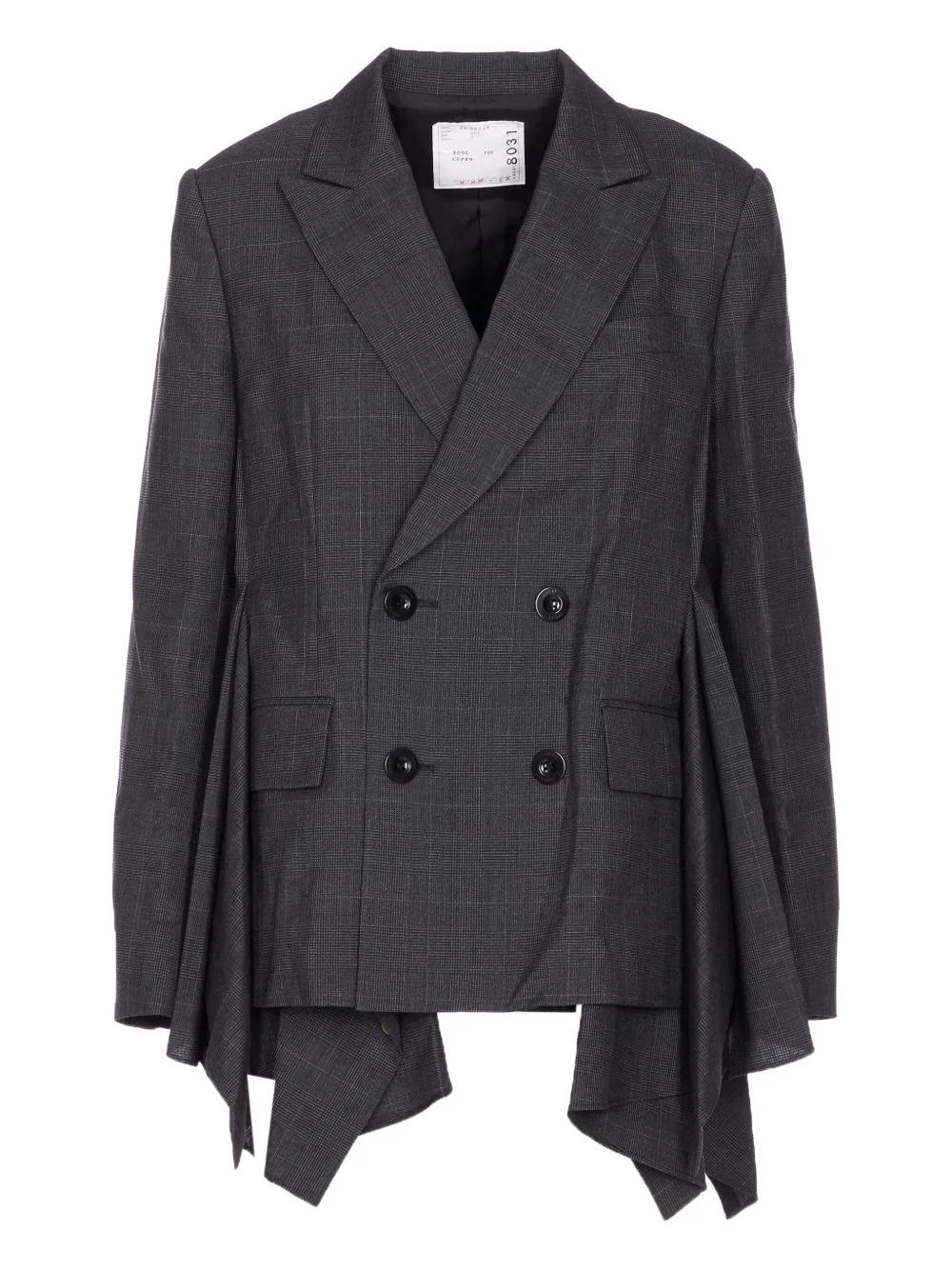 glen-check pleated blazer Highlights - Grey - Glen check pattern - Double-breasted button closure - Long sleeves - Buttons cuff detail - Pleated detail - V-neck - Reinforced shoulders Imported Composition Outer: Wool 100% Lining: Cupro 100%