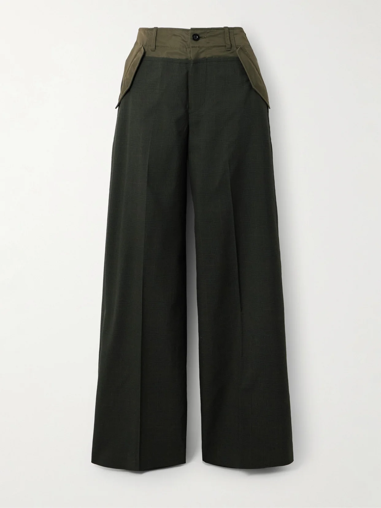 Glen Shell-trimmed Wide-leg Wool Pants
