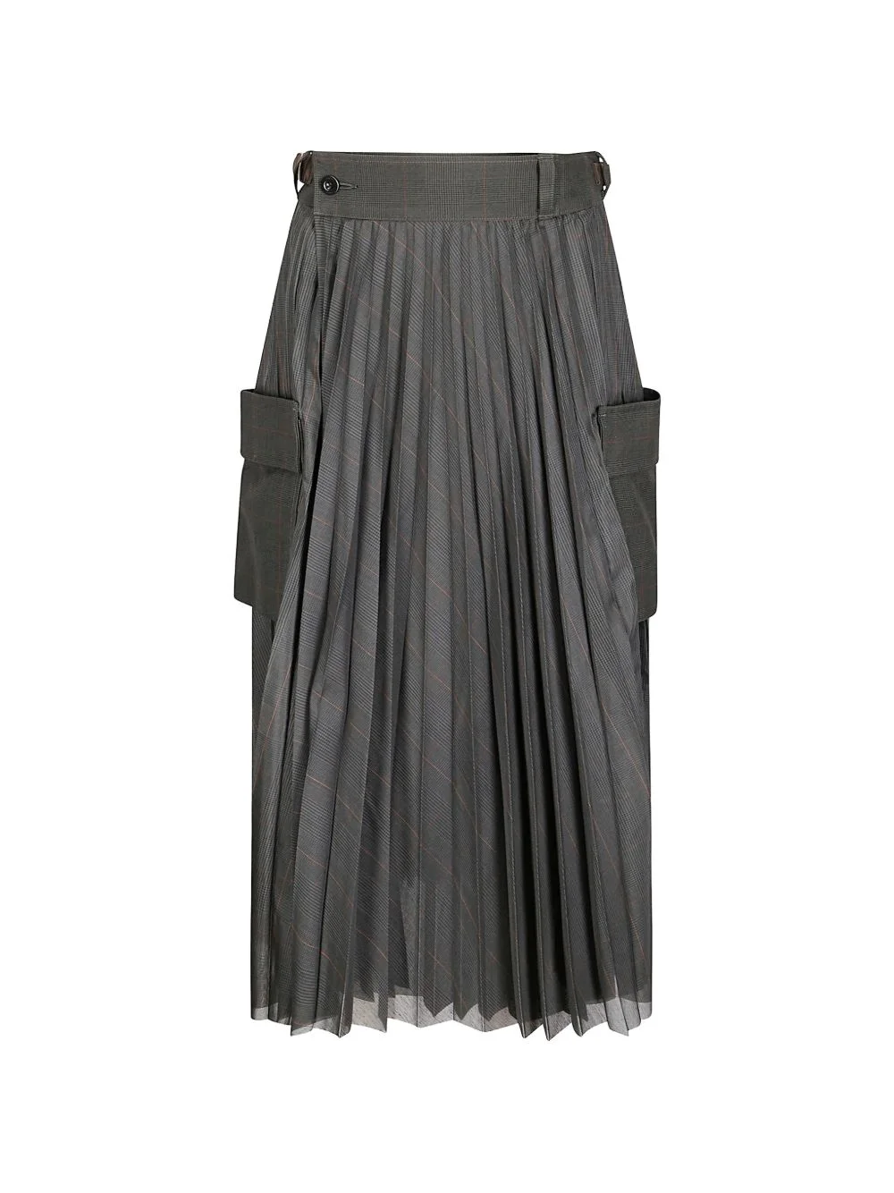Glen pleated checked midi skirt Highlights - Khaki - Check pattern - Pleats - Belt loops - Side flap pockets Imported Composition Fabric 100% Washing instructions Read Manufacturer Guidelines