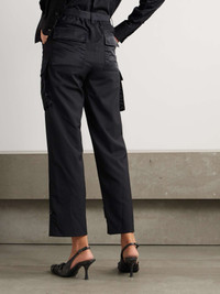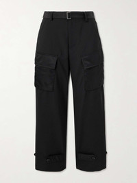 EDITORS'NOTES Utilitarian style underscores Sacai's collections. These cargo pants are cut straight from smooth grain de poudre and accented with lightweight shell panels. Use the belted waistband to perfect the fit. SIZE & FIT Model measurements: - Size 1 = XS, 2 = S, 3 = M, 4 = L - Fits true to size, take your normal size - High-rise, designed for a straight-leg fit - Cropped length - Mid-weight, non-stretchy fabric - Model is 180cm/ 5'11" and is wearing the designer's size 2 - Bust: 81cm/ 32" - Waist: 63cm/ 25" - Hip: 91cm/ 36" DETAILS & CARE - Black grain de poudre and shell - Concealed button and zip fastening at front - 70% polyester, 30% wool; trim: 100% nylon; lining: 100% cupro - Dry clean