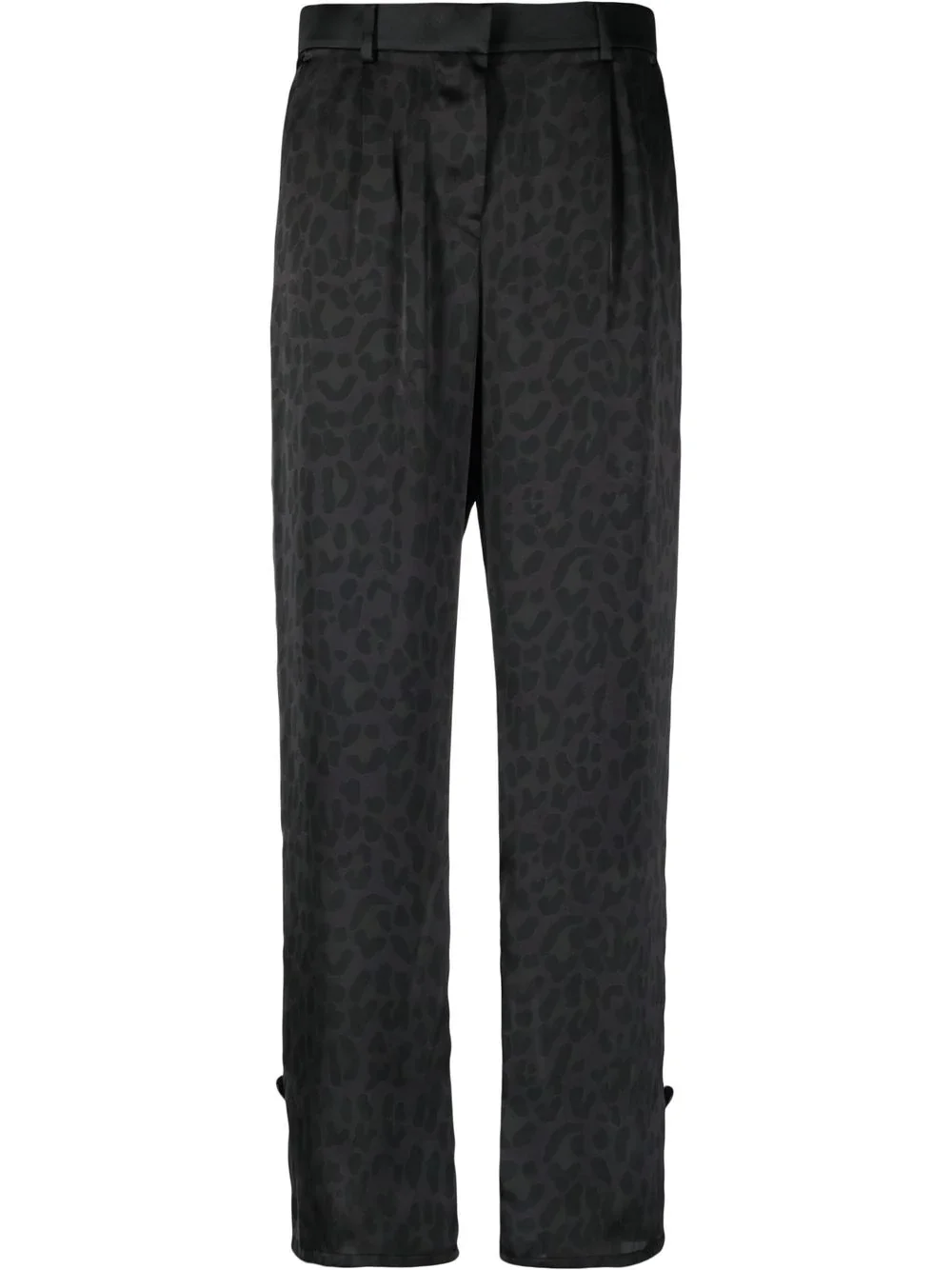 high-waisted patterned trousers black high waist front button fastening two side inset pockets Imported Composition Lining: Cupro 100% Outer: Polyester 100% SIZE & FIT Model measurements Height 5 ft 10 in(1.78 m) Bust/Chest 33.46 in(85 cm) Hips 36.22 in(92 cm) Waist 23.22 in(59 cm) FittingInformation This piece fits true to size. We recommend you get your regular size Designed to be fitted at the waist and hips, loose over the leg Made with a lightweight non-stretch fabric Washing instructions Dry Clean Only