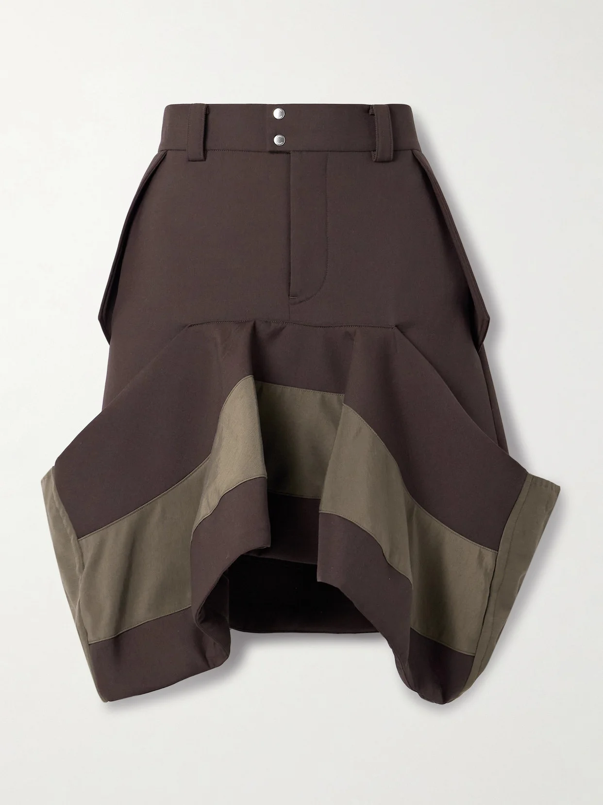 True to Sacai's signature aesthetic, this skirt features unexpected, innovative details - the draped, grosgrain-paneled hem is threaded with drawcords to change up the shape. It's made from scuba and has a sophisticated, tailoring-inspired waist. Wear yours with the matching jacket.