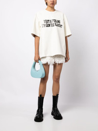 I Got A Feeling layered T-shirt Highlights - White - Calf leather - Slogan print to the front - Layered details - Rear press-stud fastening - Round neck - Short sleeves Imported Composition Calf Leather 100% SIZE & FIT Model measurements Height 5 ft 10 in(1.77 m) Bust/Chest 31.49 in(80 cm) Hips 35.43 in(90 cm) Waist 25.19 in(64 cm) FittingInformation Made from a heavyweight non-stretch fabric This piece fits true to size – take your usual size Washing instructions Read Manufacturer Guidelines