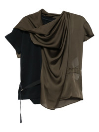 paneled T-shirt Highlights - Khaki green - Pullover design - Slide-buckle fastening - Short sleeves Imported SIZE & FIT Model measurements Height 5 ft 10 in(1.78 m) Bust/Chest 31.88 in(81 cm) Hips 37 in(94 cm) Waist 25.19 in(64 cm) FittingInformation Designed to be unstructured, offering a loose fit throughout The belt offers adjustability for fitted preferences Made from a midweight non-stretch fabric, this piece offers minimal elasticity when worn