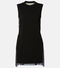 Sacai’s penchant for hybrid designs sees contrasting textures, fabrics, and techniques combined to create entirely unique and innovative styles. Knit from cotton, this minidress features a straight silhouette with an adjustable waist and a contrasting, pleated back. Product Details - Material: 100% cotton - Care instructions: dry clean - Made in Japan - Designer color name: BlackxIndigo - Item color: black, blue - Material II: 100% cotton - Material III: 100% polyester - Lining: 100% cupro - Pockets: side slit pockets, patch - Collar: crewneck - Item number: P01066690 Size & Fit - True to size - Straight fit - Adjustable at the waist - Partly stretchy fabric - The model seen in the picture is 178cm-5'10" and wearing a size 1