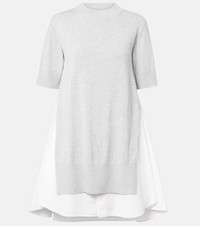 Sacai’s penchant for hybrid designs sees contrasting textures, fabrics, and techniques combined to create entirely unique and innovative styles. This minidress is knitted from cotton and features poplin inserts that create a layered effect. Product Details - Material: 100% cotton - Care instructions: dry clean - Made in China - Designer color name: L/GrayxOff White - Item color: gray, white - Trim: 65% polyester, 35% cotton - Lining: 100% polyester - Collar: crewneck - Closure: concealed button placket - Pockets: side slit pockets - Cuff: ribbed - Hem: ribbed - Item number: P01066705 Size & Fit - True to size - Designed for a loose fit - Partly stretchy fabric - The model seen in the picture is 178cm-5'10" and wearing a size 1