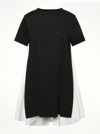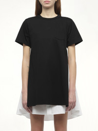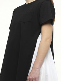 Poplin x Cotton Jersey Dress in Black/Off White