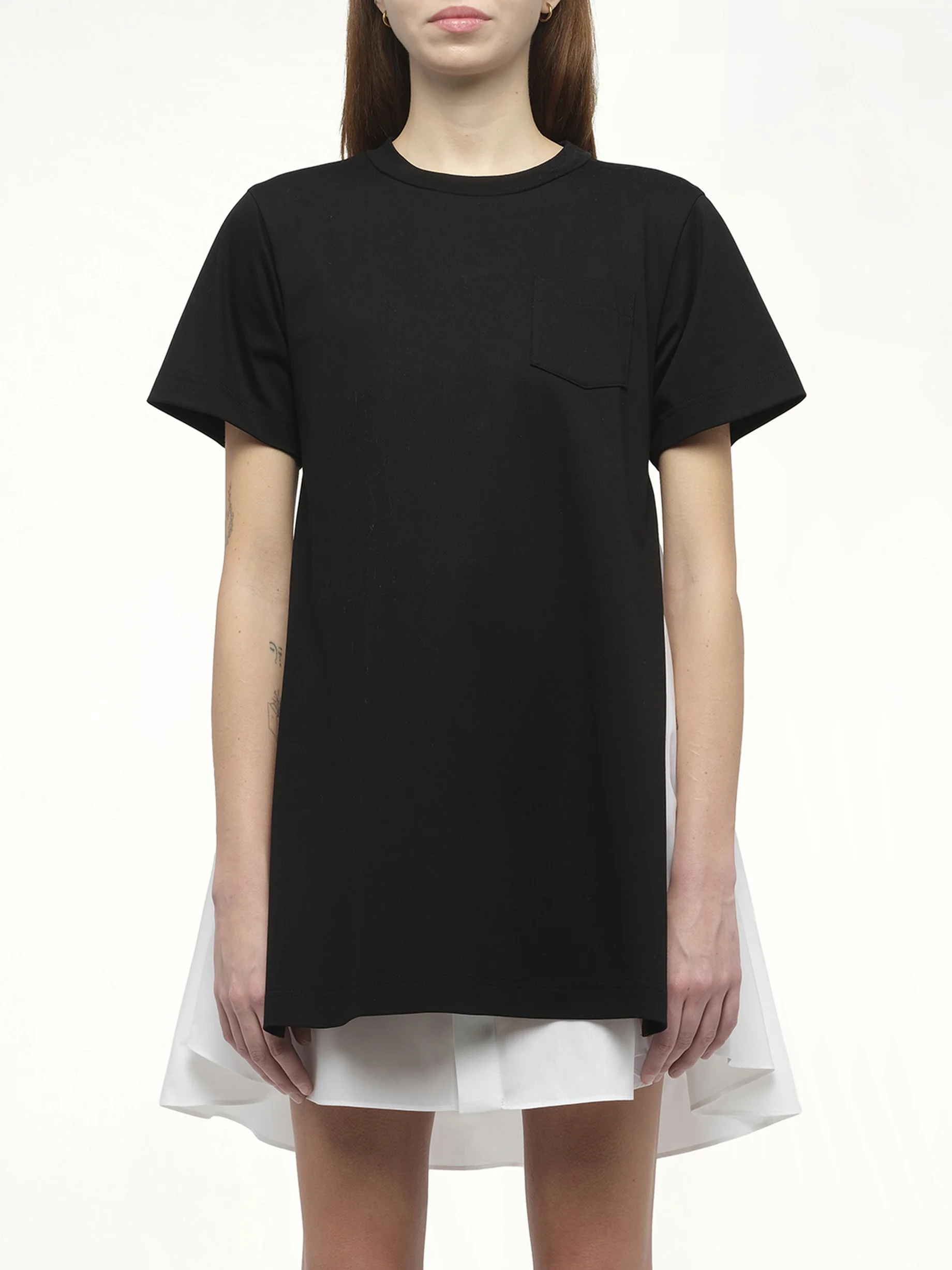 SACAI's Poplin x Cotton Jersey Dress in Black/Off White is a sophisticated blend of modern design and classic elegance. This versatile piece effortlessly transitions from day to night, offering a chic silhouette for any occasion. - Composition: Cotton 100%, Attached Parts:Polyester 65%, Cotton 35%, Polyester 100% - Contrasting black and off-white color scheme - Unique combination of poplin and jersey fabrics - Flattering fit with a contemporary edge - Perfect for both casual and formal settings Model is 178 cm and wears size 1 SKU: 2508013 004