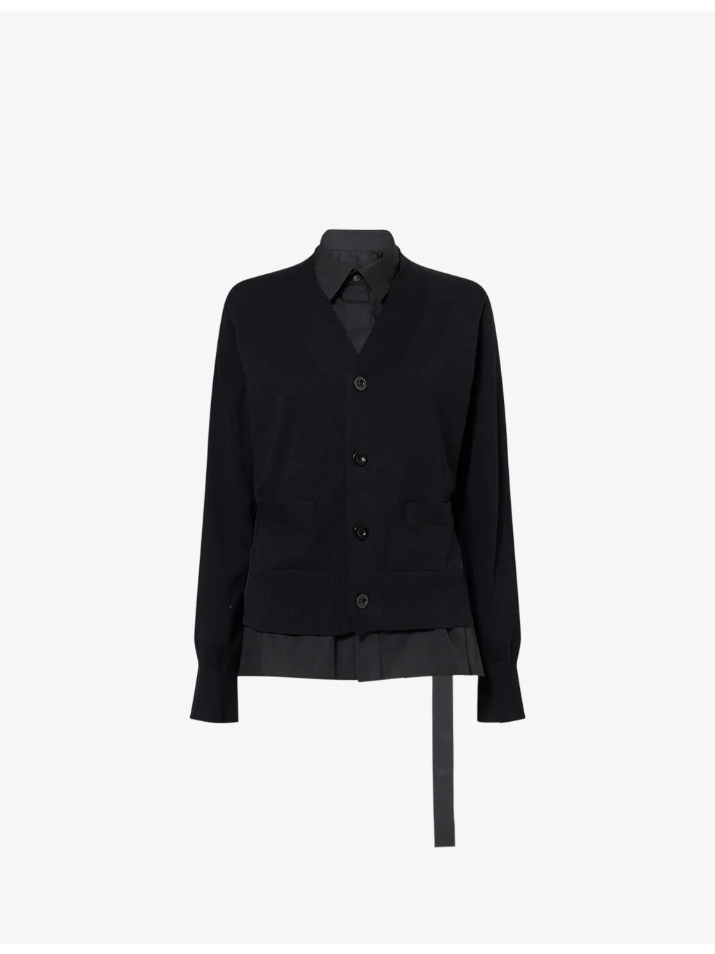 PRODUCT DETAILS - Sacai cotton cardigan - 100% cotton - Button fastening - Regular fit, collar, cardigan layer, branded buttons and hardware, curved hem - Dry clean - Made in Japan - True to size - Model is 5ft 10in/1.78m and wears a size small - Lightweight, slight stretch Ref: R04567729