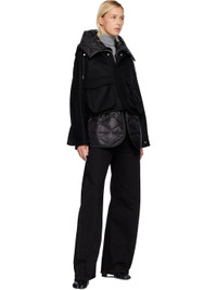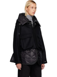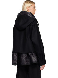 Wool melton and quilted nylon satin coat. · Bungee-style drawstring at hood · Concealed spread collar · Concealed two-way zip closure and press-stud placket · Flap and welt pockets at waist · Raglan sleeves · Pleats at press-stud barrel cuffs · Welt pocket at back · Partial satin lining Supplier color: Black Body 1: 100% wool. Body 2: 100% nylon. Trim 1: 100% polyester. Trim 2: 100% nylon. Lining: 100% cupro. Made in Japan 252445F063007