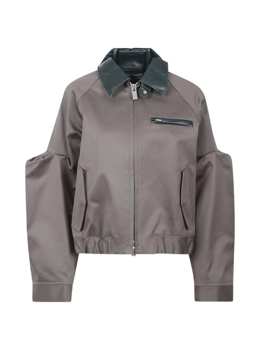 leather-collar shirt jacket Highlights - Grey - Zip fastening - Chest zip pocket - Front flap pockets Imported Composition Outer: Cotton 100%, Calf Leather 100% Lining: Cupro 100% Washing instructions Read Manufacturer Guidelines