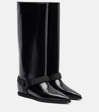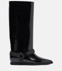 Sacai’s penchant for hybrid designs sees contrasting textures, fabrics, and techniques combined to create entirely unique and innovative styles. These knee-high boots are crafted from leather and are complete with VELCRO® straps across the vamps. Product Details - Upper: cow leather - Lining: cow leather - Sole: leather insole, rubber sole - Toe shape: pointed toe - Made in China - Includes: shoe box, dust bag - Designer color name: Black - Item color: black - Closure: VELCRO®-fastening ankle strap - Item number: P01101044 Size & Fit - True to size - Slightly narrow at the toe - European sizes - 1,5cm-0.5" platform (size EU 38) - 40cm-15.5" shaft height (size EU 38) - 39cm-15.5" shaft width (size EU 38) - shaft width measured on largest part of boot