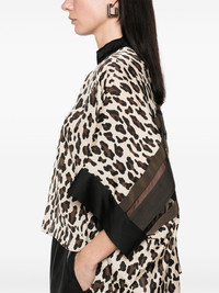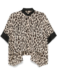 leopard-print blouse Highlights - Black - Concealed front button fastening - Dolman sleeves - Band collar - Handkerchief hem Imported Composition Polyester 100%, Cotton 100% SIZE & FIT Model measurements Height 5 ft 10 in(1.78 m) Bust/Chest 33.46 in(85 cm) Hips 36.22 in(92 cm) Waist 23.22 in(59 cm) FittingInformation Designed to be unstructured, offering a loose fit throughout Made from a lightweight non-stretch fabric Washing instructions Dry Clean Only