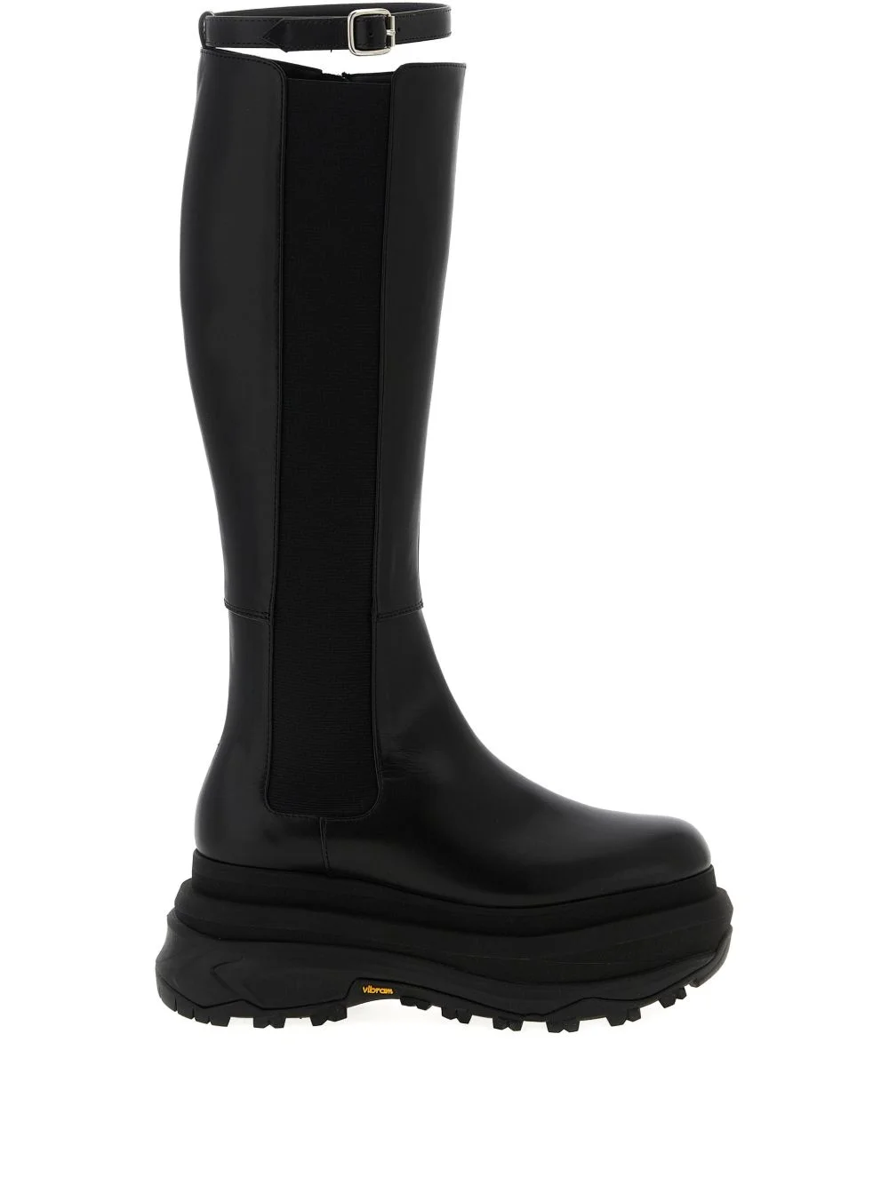 platform boots Highlights - Black - Leather - Removable adjustable strap - Side zip closure - Platform sole Imported Composition Outer: Calf Leather 100% Lining: Calf Leather 100% Sole: Rubber 100%