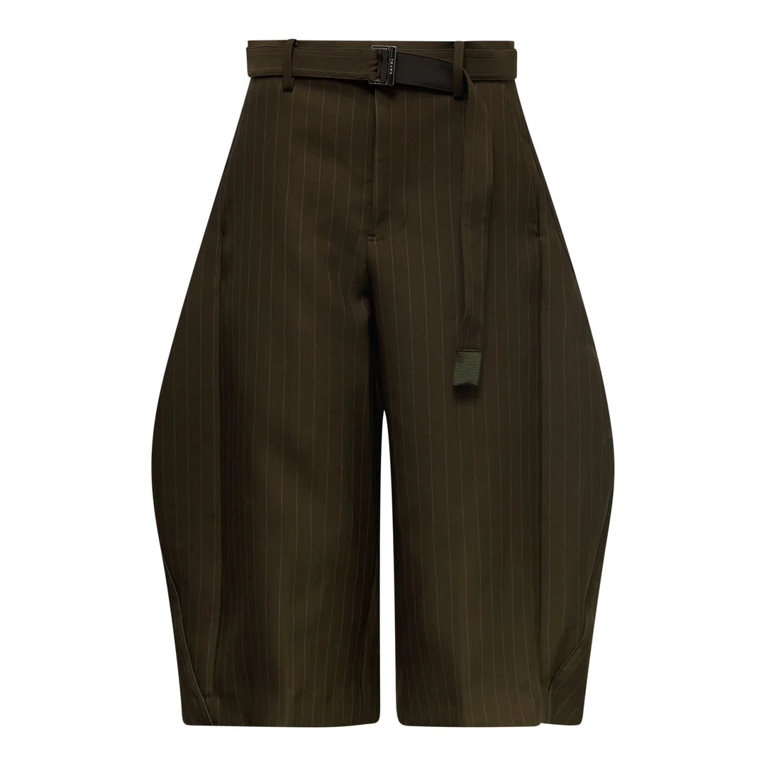 600078444BRN001 / 26-08369/00/818 - Matelasse quilted twill construction - High-waisted design with belt loops - Matching fabric belt with buckle closure - Wide-leg silhouette - Cropped length - Front pleating details - Relaxed fit sacai Matelasse Twill Pants deliver innovative Japanese tailoring with avant-garde silhouette construction. Crafted from premium matelasse-quilted twill fabric in military olive green, featuring distinctive wide-leg proportions and architectural draping. The deconstructed design combines traditional craftsmanship with sacai's signature experimental aesthetic for contemporary luxury.