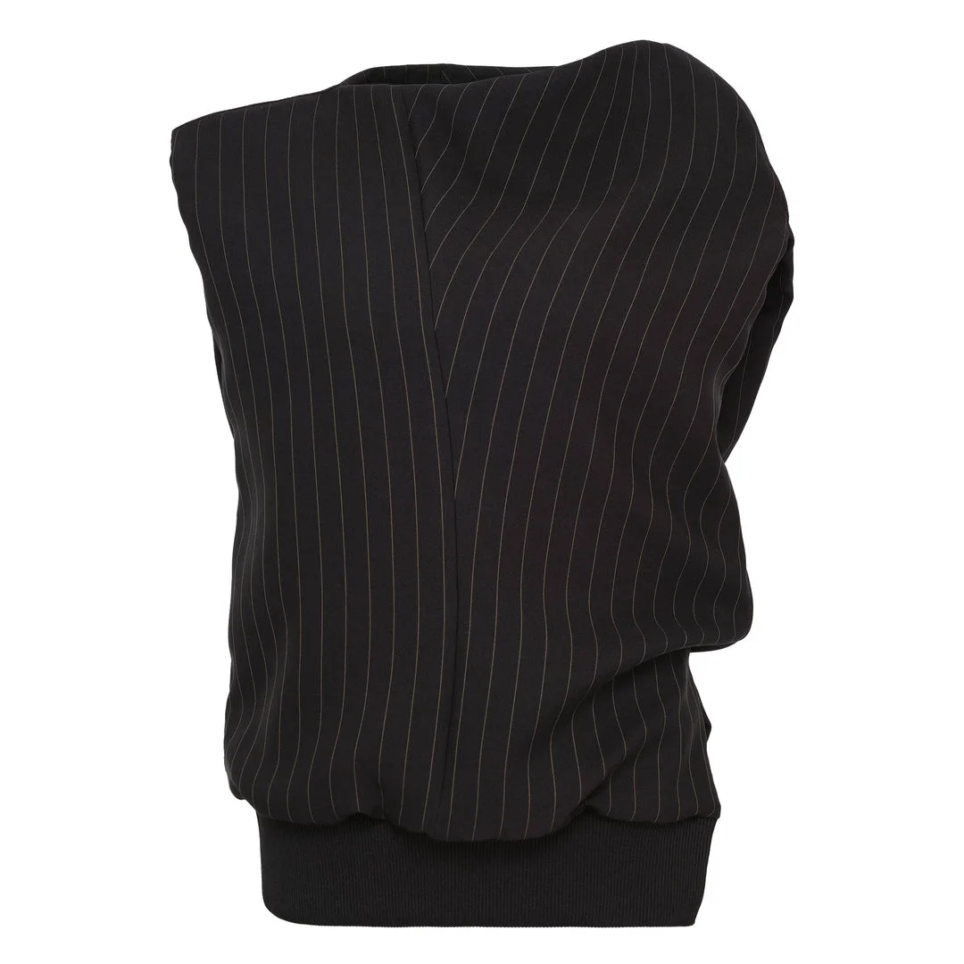 600078442BLK001 / 26-08367/00/816 - Quilted matelasse construction - Pinstripe pattern throughout - Sleeveless design - V-neckline - Ribbed knit hem band - Relaxed fit - Japanese craftsmanship The sacai Matelasse Twill Pullover delivers contemporary avant-garde style with architectural construction and refined Japanese craftsmanship. Made from premium quilted matelasse fabric in sleek black pinstripe, featuring the brand's signature hybrid design approach. The structured silhouette and ribbed hem create a sophisticated statement piece that bridges formal and casual aesthetics.