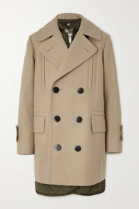 Convertible double-breasted wool-felt and quilted shell coat