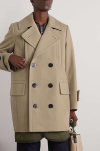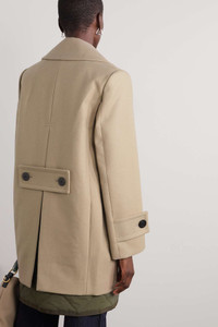 EDITORS'NOTES Sacai's coat is tailored from wool-felt chosen for its warmth during cooler months and has oversized buttoned tabs at the back for a unique edge. It comes with a longer shell lining that you can detach and wear separately. SIZE & FIT - Size 1 = XS, 2 = S, 3 = M, 4 = L - Fits true to size, take your normal size - Cut for a slightly loose fit - Designed with a detachable, slim-fitting gilet - Weighted, non-stretchy fabric with padded panels - Model is 177cm/ 5'10" and is wearing the designer's size 2 DETAILS & CARE - Beige wool-felt, army-green shell - Double-breasted button fastenings through front, two-way zip fastening - Fabric1: 100% wool; fabric2: 100% cupro - Dry clean