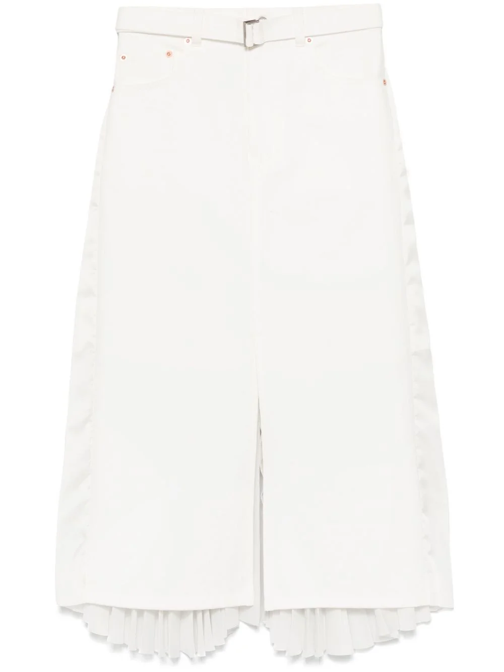 pleated-back midi skirt Highlights - White - Concealed fly and button fastening - Detachable and adjustable waist belt - Belt loops - Classic five pockets Imported Composition Outer: Polyester 100%, Cotton 100% Lining: Cupro 100% SIZE & FIT Model measurements Height 5 ft 9 in(1.75 m) Bust/Chest 31.88 in(81 cm) Hips 34.64 in(88 cm) Waist 24.01 in(61 cm) FittingInformation This midi-length skirt is intended to be worn just below the waist The belt offers adjustability for fitted preferences Made from a midweight fabric Washing instructions Dry Clean Only