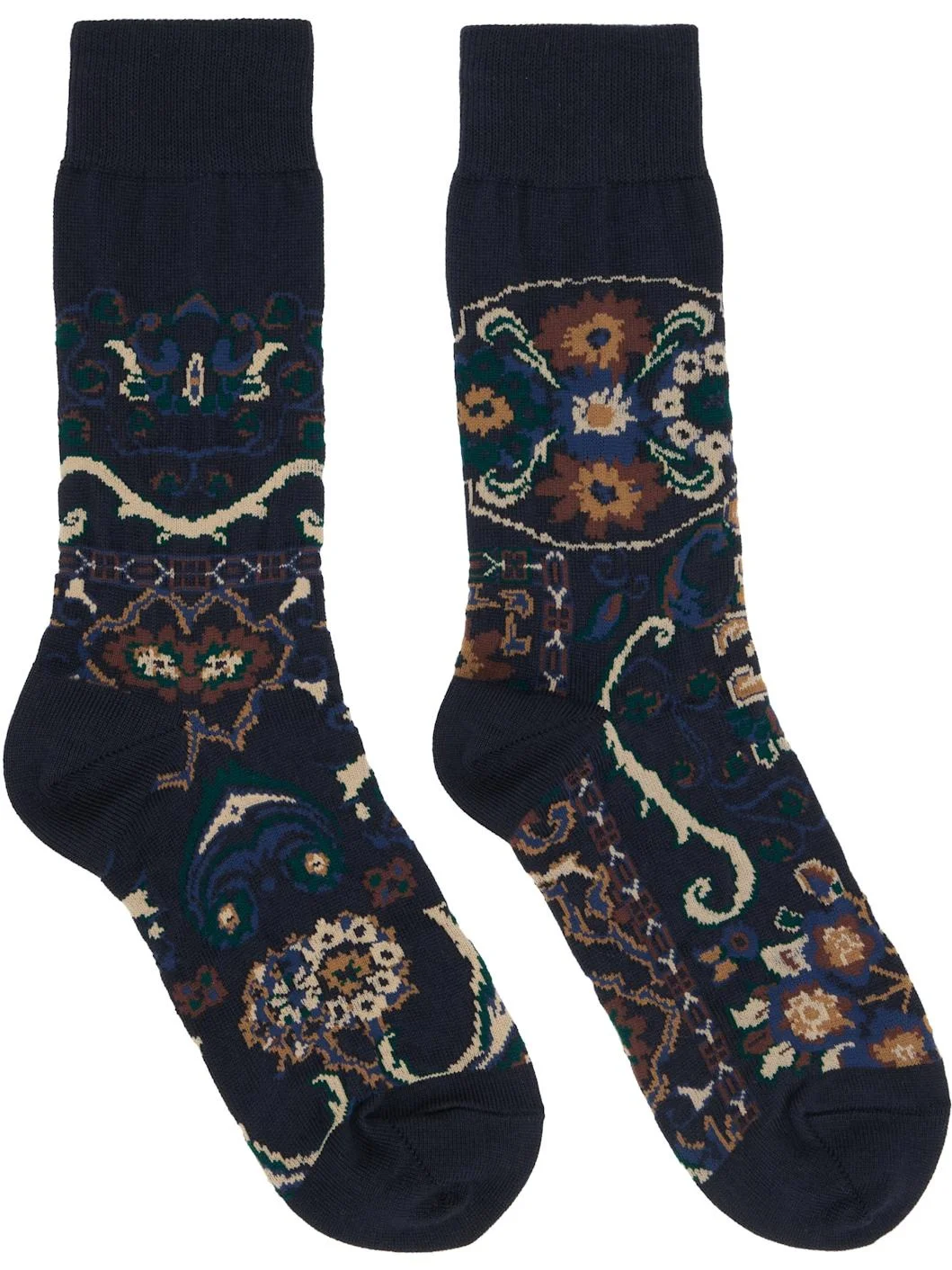 Pair of mid-calf knit cotton-blend socks. · Jacquard paisley pattern throughout · Rib knit cuffs · Logo printed at sole Supplier color: Navy 60% cotton, 40% nylon. Made in Japan 252445F076002