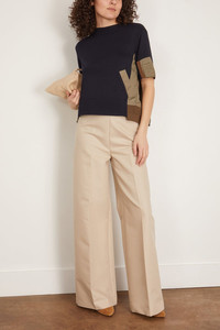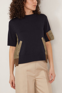 Nylon Twill and Knit Pullover in Navy/Taupe