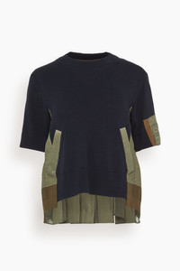 The Sacai Nylon Twill and Knit Pullover features the unique details you love from this designer. This top features dramatic puffed sleeves in their signature mixed material. Wear yours with jeans and flats. FIT DESCRIPTION MODEL MEASUREMENTS - Fits true to size, take your normal size - Pullover - Crew neckline - Puffed sleeves - Ribbed knit - Mixed material - 57% Cotton, 43% Polyester - Trims: 100% Nylon - Taylor is wearing a size 1/ XS - Bust: 33.5" - Waist: 27.5" - Hips: 36.5" - Height: 5’9”