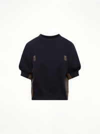 Sacai's Sponge x Nylon Twill Pullover in Navy/Dark Khaki is a versatile and stylish piece that combines comfort with a modern aesthetic. Perfect for layering, this pullover offers a unique blend of textures and colors. - Composition: Cotton 62%, Pe 38%, Attached Parts:Nylon 100%, Cotton 100%, Pe 55%, Cotton 44%, Polyurethane 1%, Liner:Cupro 100% - Features a relaxed fit for easy layering - Contrasting color panels for a contemporary look - Ribbed cuffs and hem for added comfort - Half-zip closure for adjustable ventilation - Functional front pocket for convenience - Made in - Model is 178 cm and wears size 1 SKU: 2508060 233