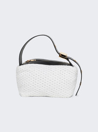 Details - Adjustable leather shoulder strap - Zip closure - Patch pocket at interior - Twill lining - Logo engraved gold tone hardware - Care according to label - Material: Cotton and Leather - Dimensions: H5" x W7.5" x D3.5" Brand Style: S151-01 Designer/Brand: SACAI