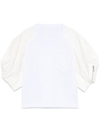 short puff-sleeves T-shirt Highlights - White - Chest patch pocket - Sleeve zip pocket - Crew neck Imported Composition Cotton 100% SIZE & FIT Model measurements Height 5 ft 10 in(1.78 m) Bust/Chest 33.85 in(86 cm) Hips 36.61 in(93 cm) Waist 26.77 in(68 cm) FittingInformation Designed for a relaxed fit, this piece allows for comfort and movement when worn Made from a midweight non-stretch fabric, this piece offers minimal elasticity when worn