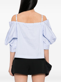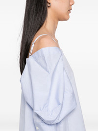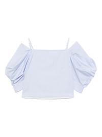 striped top Highlights - Sky blue - Adjustable spaghetti straps - Off-shoulder - Buttoned-cuff sleeves Imported Composition Cotton 100% SIZE & FIT Model measurements Height 5 ft 10 in(1.77 m) Bust/Chest 30.7 in(78 cm) Hips 35.82 in(91 cm) Waist 21.25 in(54 cm) FittingInformation Designed to be unstructured, offering a loose fit throughout The adjustable shoulder straps allow for a preferred fit when worn Made from a midweight non-stretch fabric Washing instructions Dry Clean Only