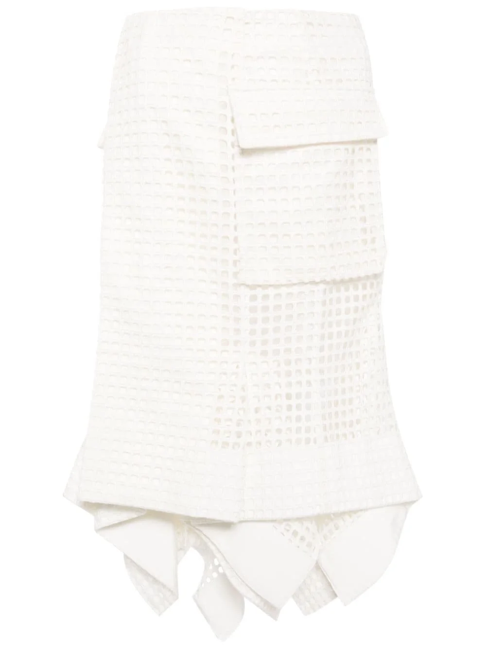 handkerchief cotton midi skirt Highlights - White - Cotton - Cut-out detailing - Grid pattern - Wrap design - Concealed front button fastening - Two side flap pockets - Handkerchief hem - Mid-length - Satin lining Imported Composition Outer: Cotton 100% Lining: Cupro 100% SIZE & FIT Model measurements Height 5 ft 9 in(1.76 m) Bust/Chest 29.13 in(74 cm) Hips 33.07 in(84 cm) Waist 22.83 in(58 cm) FittingInformation This midi-length skirt is intended to be worn high on the waist Made from a midweight non-stretch fabric This piece fits small – take one size up