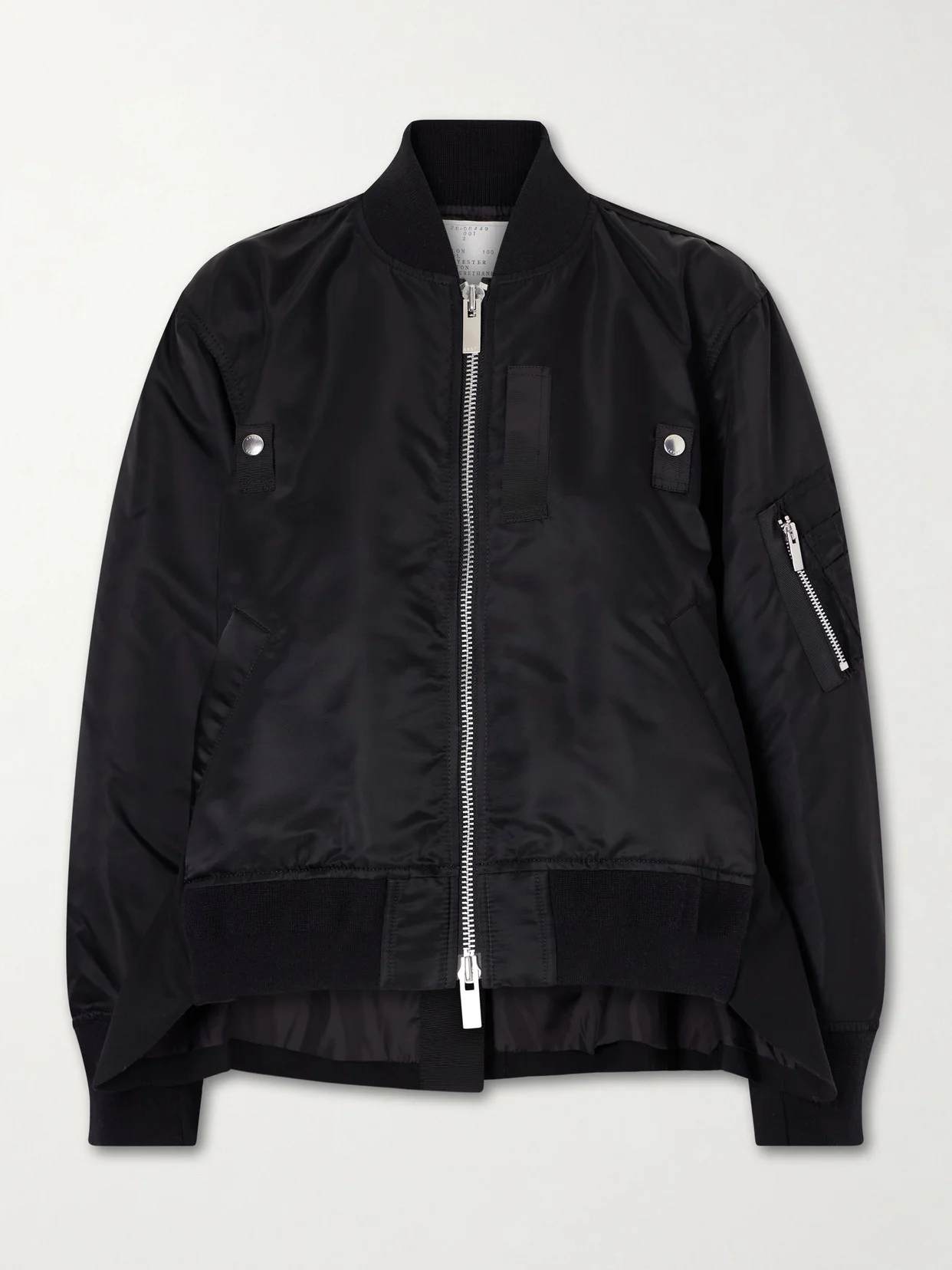Sacai is known for layered, deconstructed silhouettes that fuse contrasting textures and fabrics. Made from twill, this bomber jacket features an unconventional shape with blazer-style inserts at the sides and a single vent at the back. Wear it as a final layer to add dimension and a distinctive, modern twist to your outfit.