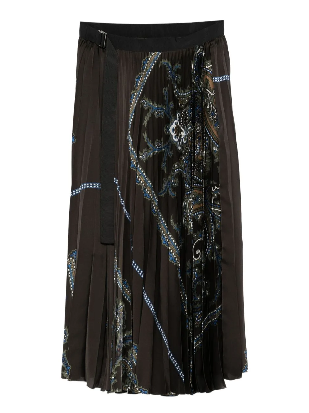 paisley-print pleated skirt Highlights - Khaki - Pleated - Paisley print - Belted waist - Self-tie belt - Midi length Imported Composition Outer: Polyester 100% Lining: Cupro 100% SIZE & FIT Model measurements Height 5 ft 9 in(1.76 m) Bust/Chest 31.49 in(80 cm) Hips 35.03 in(89 cm) Waist 24.8 in(63 cm) Washing instructions Read Manufacturer Guidelines
