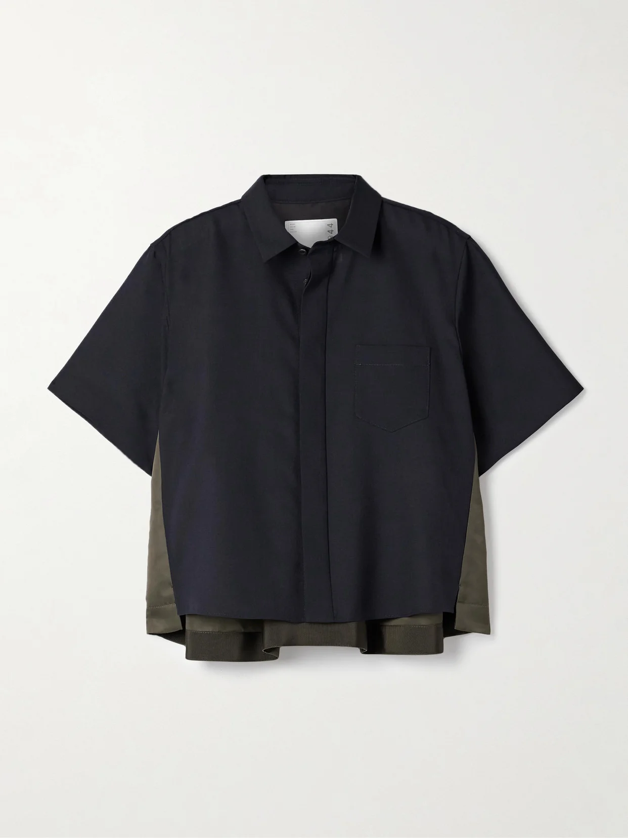 Sacai loves experimenting with fabric and texture to create clothing that feels truly distinct. This shirt is made from panels of midnight-blue cotton and army-green shell and has a covered placket for a neat finish. The back hem is reinforced for subtle structure.