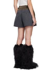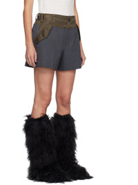 Wool-blend doeskin and nylon twill shorts. · Paneled construction · Striped throughout · Cinch tabs at partially elasticized waistband · Belt loops · Four-pocket styling · Zip fly · Full satin lining Supplier color: Gray/Khaki Body: 55% polyester, 45% wool. Trim: 100% nylon. Lining: 100% cupro. Made in Japan 252445F088001