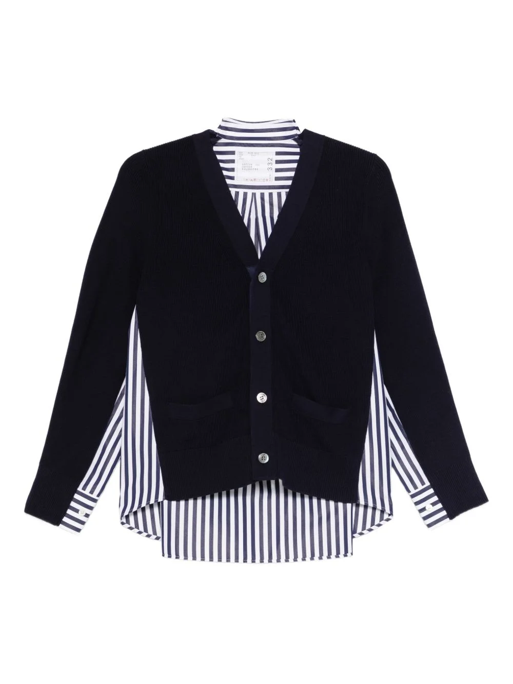panelled cardigan Highlights - Blue/white - Stripe pattern - V-neck - Front button fastening - Front pockets - Long sleeves Imported Composition Cotton 100% SIZE & FIT Model measurements Height 5 ft 9 in(1.76 m) Bust/Chest 31.88 in(81 cm) Hips 35.43 in(90 cm) Waist 24.8 in(63 cm) Washing instructions Dry Clean Only