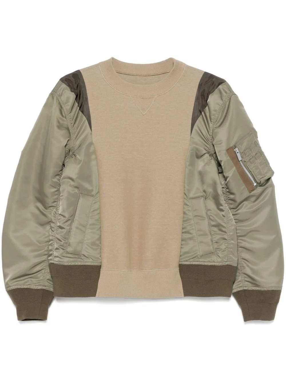 panelled sweatshirt Highlights - Moss green - Sleeve zip pocket - Ribbed cuffs and hem - Two press-stud fastening side pockets Imported Composition Cupro 100%, Cotton 62%, Polyester 38% SIZE & FIT Model measurements Height 5 ft 10 in(1.78 m) Bust/Chest 32.67 in(83 cm) Hips 35.43 in(90 cm) Waist 23.22 in(59 cm) FittingInformation Designed for a relaxed fit, this piece allows for comfort and movement when worn Made from a midweight fabric