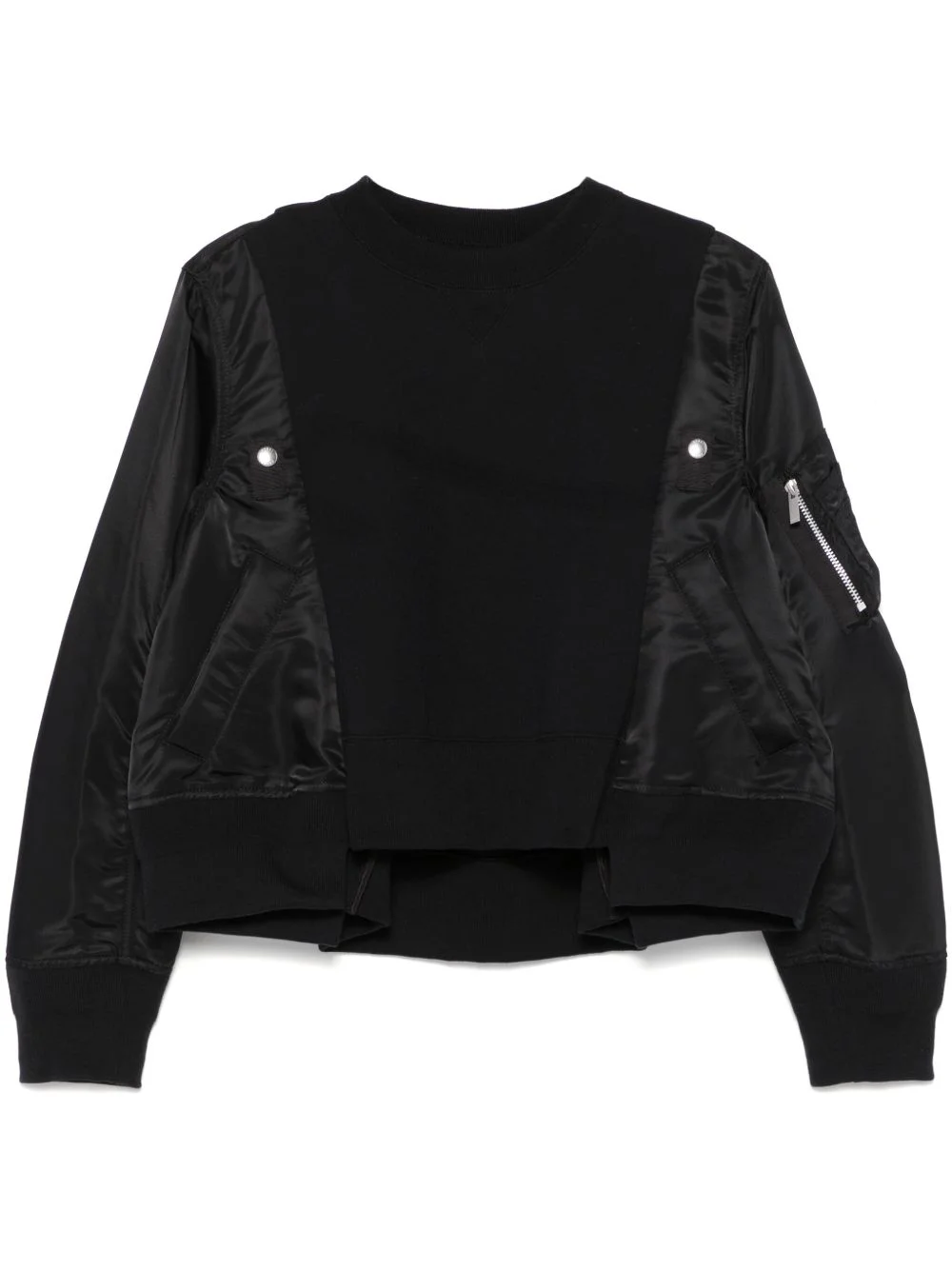 panelled sweatshirt Highlights - Black - Sleeve zip pocket - Two press-stud fastening side pockets - Ribbed cuffs and hem Imported Composition Outer: Nylon 100%, Cotton 62%, Polyester 38% Lining: Polyester 100% SIZE & FIT Model measurements Height 5 ft 10 in(1.78 m) Bust/Chest 33.46 in(85 cm) Hips 36.22 in(92 cm) Waist 23.22 in(59 cm) FittingInformation Designed to be unstructured, offering a loose fit throughout Made from a midweight fabric