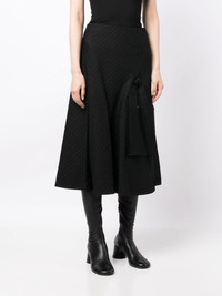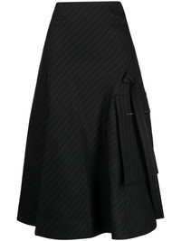 pinstripe wool skirt Highlights - Black - Wool - Pinstripe pattern - Strap detailing - Rear zip fastening - High-waisted - A-line - Straight hem - Mid-length Imported Composition Outer: Wool 100% Cupro 100%, Nylon 100% Lining: Cupro 100% SIZE & FIT Model measurements Height 5 ft 10 in(1.77 m) Bust/Chest 28.74 in(73 cm) Hips 35.82 in(91 cm) Waist 24.4 in(62 cm) FittingInformation This midi-length skirt is intended to be worn high on the waist Made from a midweight non-stretch fabric This piece fits true to size – take your usual size Washing instructions Dry Clean Only