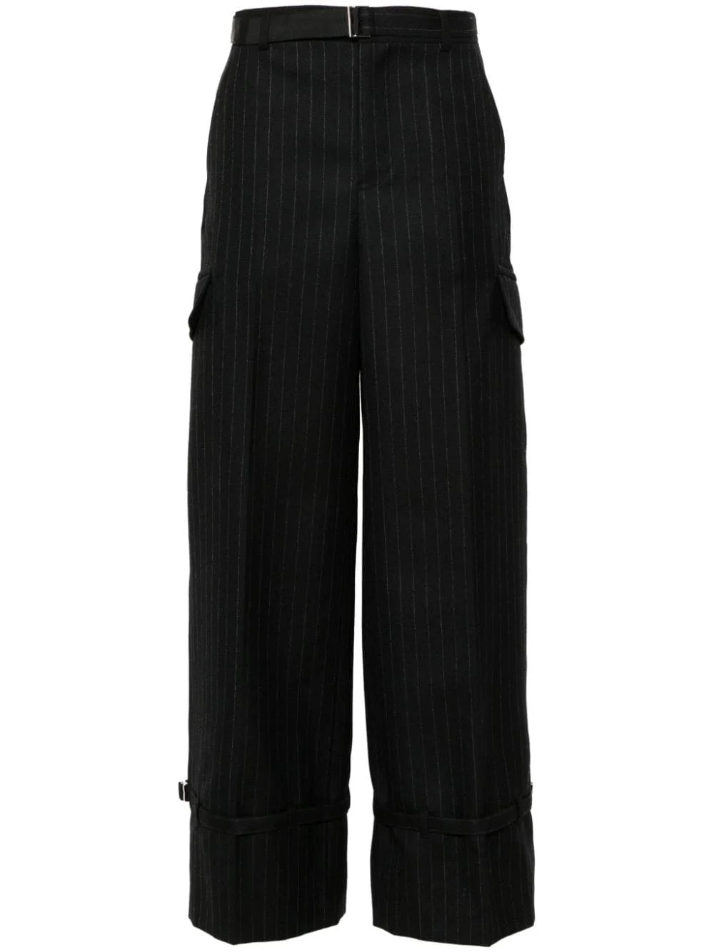 pinstriped trousers Highlights - Black - Wool - Pinstripe pattern - Belt loops - Detachable waist belt - Two diagonal pockets to the sides - Two side cargo pockets - Belted ankles - Two rear button-fastening jetted pockets - Concealed front button, hook and zip fastening Imported Composition Outer: Wool 100% Lining: Cupro 100% SIZE & FIT Model measurements Height 5 ft 9 in(1.75 m) Bust/Chest 32.67 in(83 cm) Hips 36.22 in(92 cm) Waist 24.8 in(63 cm) FittingInformation Designed with a wide-leg cut, these trousers allow for a close fit at the waist and offer a loose and roomy fit over the leg The belt offers adjustability for fitted preferences Made from a midweight non-stretch fabric This piece fits true to size – take your usual size Washing instructions Dry Clean Only