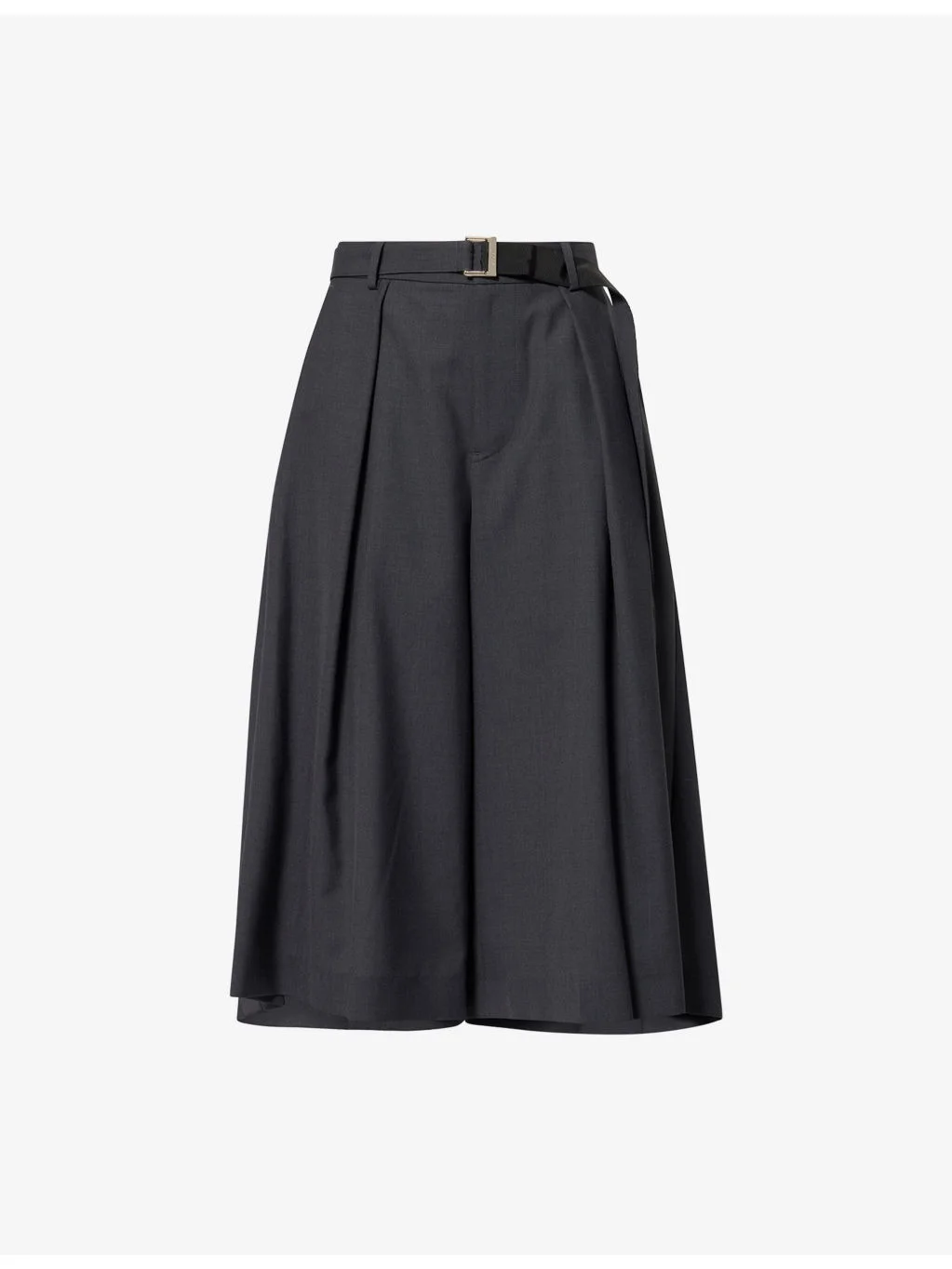 PRODUCT DETAILS - Sacai woven trousers - 65% polyester, 35% wool - Button, hook-and-eye and zip-fly fastening - Relaxed fit, mid-rise, pleat wide leg, structured waistband with belt loops, slip pockets at front - Dry clean - True to size - Size small: rise 12.5in / 32cm, inside leg 18in / 46cm, leg opening 42in / 107cm - Model is 5ft 10in/1.78m and wears a size small - Lightweight, non-stretch Ref: R04567701