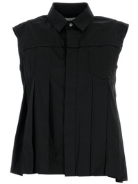 pleated asymmetric shirt Highlights - Black - Cotton blend - Pleat detailing - Asymmetric hem - Chest patch pocket - Classic collar - Concealed front fastening - Sleeveless Imported Composition Polyester 65%, Cotton 35% SIZE & FIT FittingInformation Designed for a close fit at the chest with a loose fit over the waist and hips Made from a midweight non-stretch fabric
