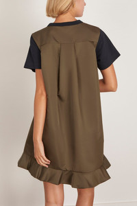 Nylon Twill x Cotton Jersey Dress in Navy/Dark Khaki