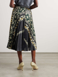 EDITORS'NOTES Sacai is renowned for its out-of-the-box designs that give your outfit plenty of unexpected interest. This midi skirt is made from twill that's cleverly printed to create the illusion it's knitted with bohemian patterns. It's pleated for pretty movement and has a grosgrain-trimmed waist that extends down one side. SIZE & FIT Model measurements: - Size 1 = XS, 2 = S, 3 = M, 4 = L - Fits true to size, take your normal size - Midi-length, designed to be worn at the waist - Mid-weight, non-stretchy fabric - Model is 177cm/ 5'10" and is wearing the designer's size 1 - Bust: 79cm/ 31" - Waist: 61cm/ 24" - Hip: 89cm/ 35" DETAILS & CARE - Multicolored twill - Concealed button fastening at side - 100% polyester; trim: 100% cupro - Dry clean