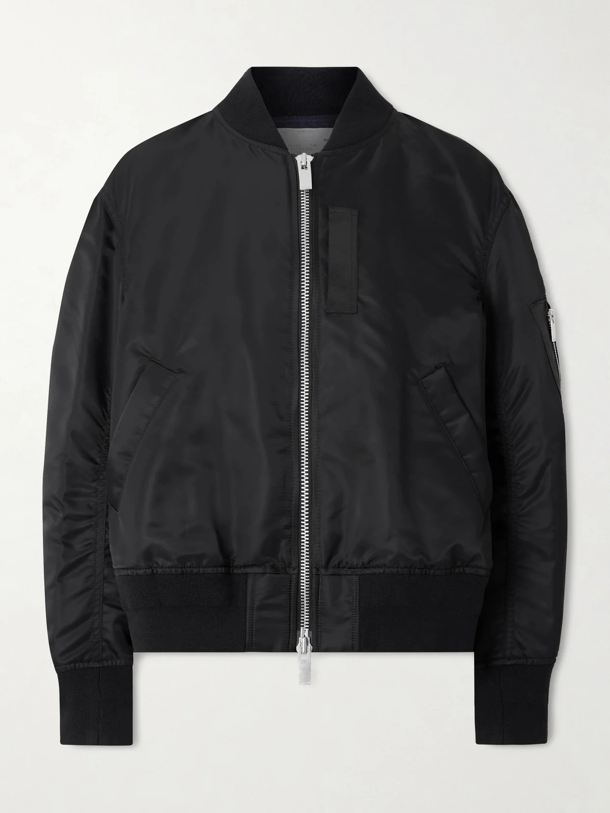 Sacai understands the importance of the classics, but also the importance of playing on them. This bomber jacket is made from shell with several hallmarks of traditional styles, like the short collar, ribbed trims and sleeve pocket. The deep, inverted pleat at the back, meanwhile, changes up and modernizes the overall shape.