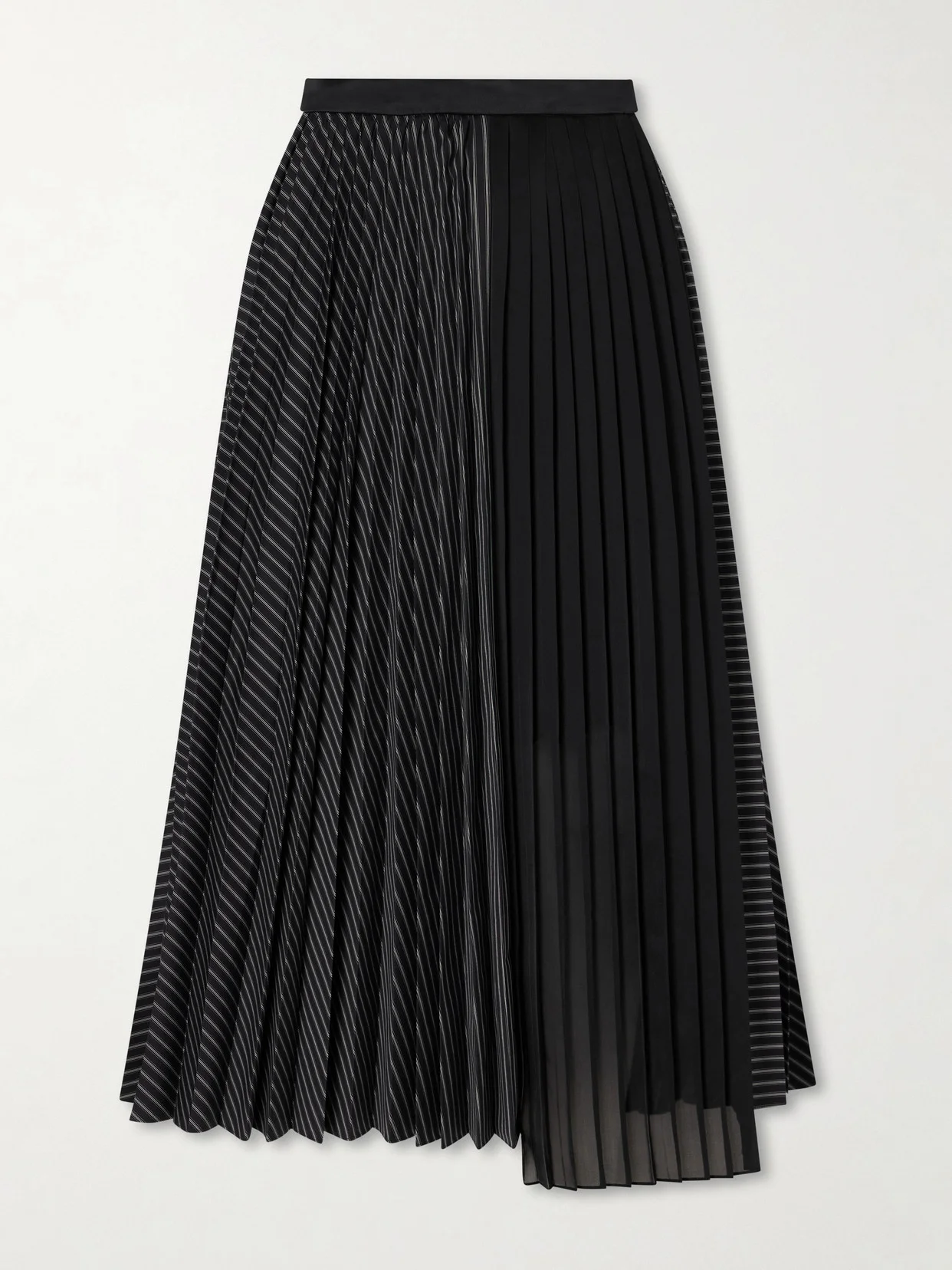 Sacai delivers modern, inventive clothing with a deconstructed, boundary-pushing edge. This skirt is made from pleated cotton-blend poplin in a striped pattern, elevated by a chiffon insert at the front that adds movement and a dynamic, layered effect to the design.