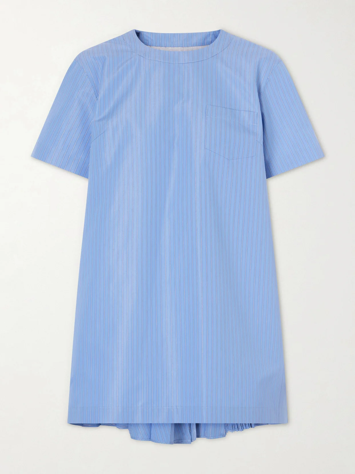 Pleated Striped Cotton-blend Poplin Mini Dress